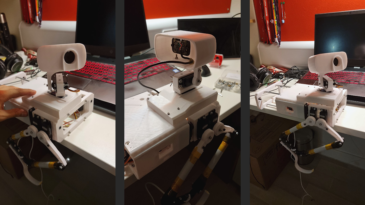 After three months of testing Continuity's front legs only, I'm excited to share that the walking rover has taken a giant leap forward. I've just rolled out an update, bringing the two rear legs into action. This development is a game-changer because now I can dive into real 4-legs-balancing tests, exploring pitch and roll axes movements, along with trying out various walking gaits and manoeuvres. As of now, Continuity is equipped with 8x 25 Kg Servo Motors, each thirsting for 5-7 volts and drawing 1-2 Amps. The entire body is currently made out of 3D-printed PLA, but I've got big plans for the next version: several structural parts of the body will be converted into a sleek carbon fiber structure. The mobility system, aka the legs, is also in for an upgrade, transitioning to a robust aluminium CNC machining.